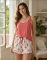 - Regata com estampa lisa e detalhes em volta da alça com a mesma estampa do shorts